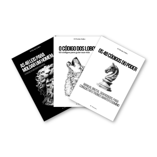 Três Livros. Um Novo Homem. Este não é um kit de leitura. É um arsenal. Um chamado para quem cansou de ser manipulado, ignorado, usado e descartado.